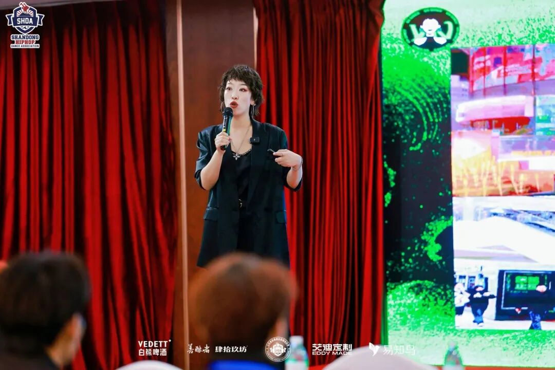 ▲山东省街舞协会爵士舞委员会主任黄霄云进行工作汇报